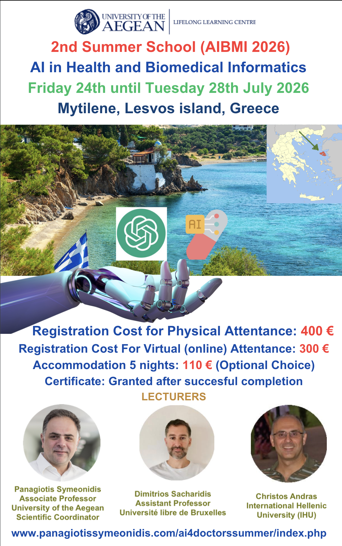 2nd Summer School ΑΙ in Health and Biomedical Informatics - AIBMI2026 SCHOOL OF ENGINEERING - Department of Information and Communication Systems Engineering24 Jul 2026 to 28 Jul 2026Lesvos